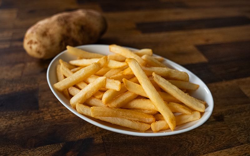 Chris knows that the perfect potato is the secret behind every chip. His ideal? “For us, a good potato is a nice, oval, 5-6 inches long so that it fills the plate,” he says. “You get those nice long chips.”