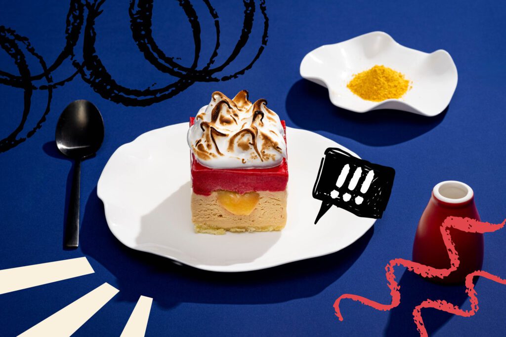 - The sponge can be left to last if preferred. Sit the unmoulded ice cream layers onto a made to measure piece of cake before adding the meringue and torching.