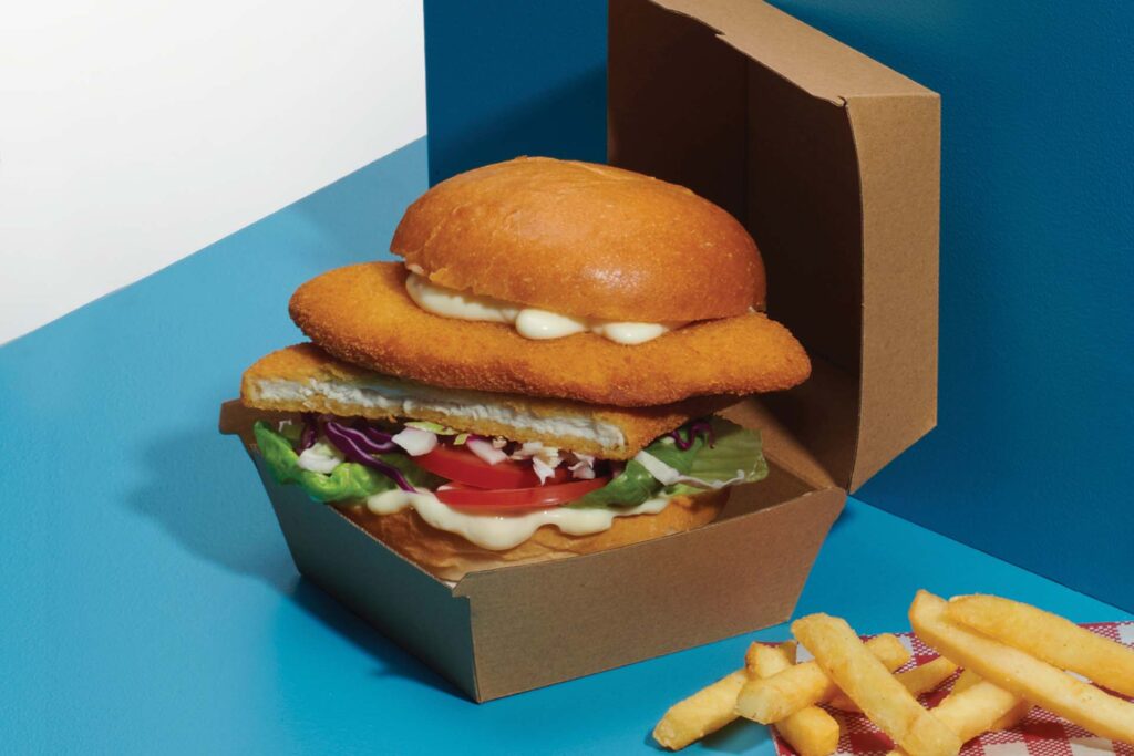 Delicious golden schnitzel sandwiched inside a toasted bun and topped off with creamy mayo, mustard and salad. Serve with a side of chips for the ultimate takeaway option for your summer menu.