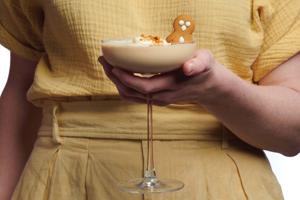 Spiced caramel sauce, vodka, dark chocolate liqueur shaken and topped off with gingerbread men, this Christmas cocktail is just what the adults ordered.