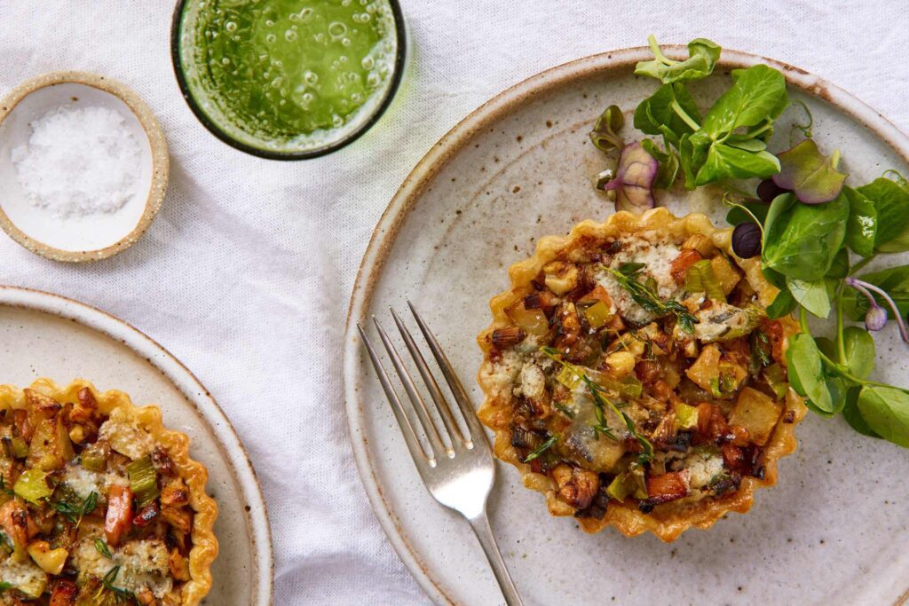 Once cool enough to touch, gently remove each tart from their tins and place on a plate. Serve with a simple side salad.