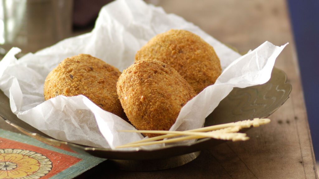 Coarsely mash the potato and fish in a bowl. Add the chilli, onion mixture, lime and salt and combine well. Divide the mixture into even pieces, shape into balls, then flatten slightly with the palm of your hand to make 5cm thick discs.
