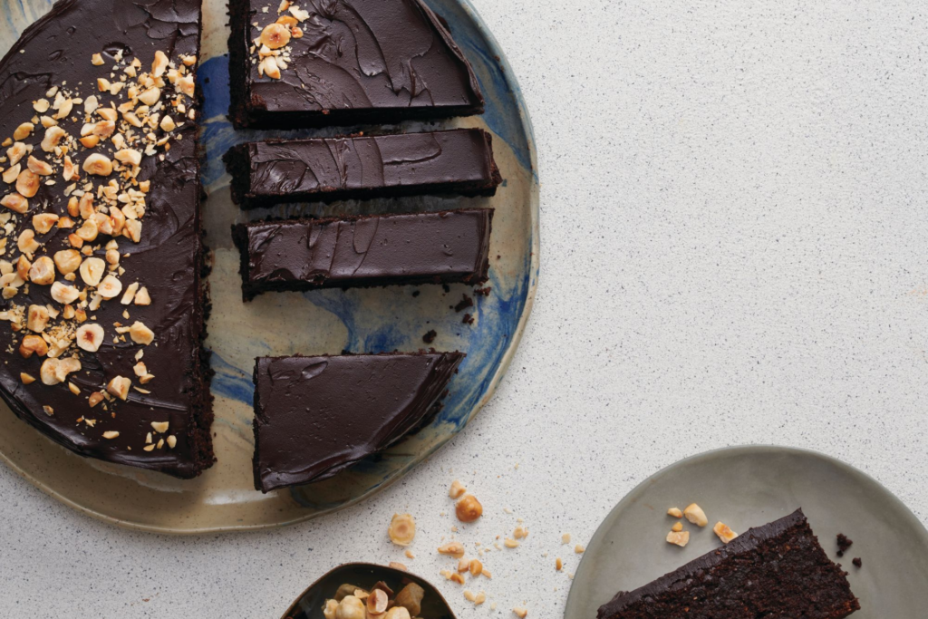 Preheat the oven to 180˚C. Grease and line a 23cm cake tin. Break the chocolate into pieces and place in a bowl above the saucepan of simmering water. Melt the chocolate, stirring occasionally. Remove from heat and set aside to cool. In a bowl, mix the butter and caster sugar until smooth and creamy. Add the egg yolks one at a time. Add the orange zest and ginger. Mix well. Add the hazelnut meal. Mix well. Once the melted chocolate has cooled to lukewarm, gently mix through the mixture. In a separate bowl, whisk the egg whites until they form soft peaks. Using a whisk, gently fold several tablespoons of the egg whites through the mixture. Gently fold through a third of the mix, then another third, and then the final third to make a batter that is light and shiny. Pour into the tin, smooth the top. Place in the centre of the oven and bake for 40 minutes or until a skewer, when inserted, comes out clean. Allow to cool for 5 minutes. Remove from tin and allow to cool for several hours on a cake rack.